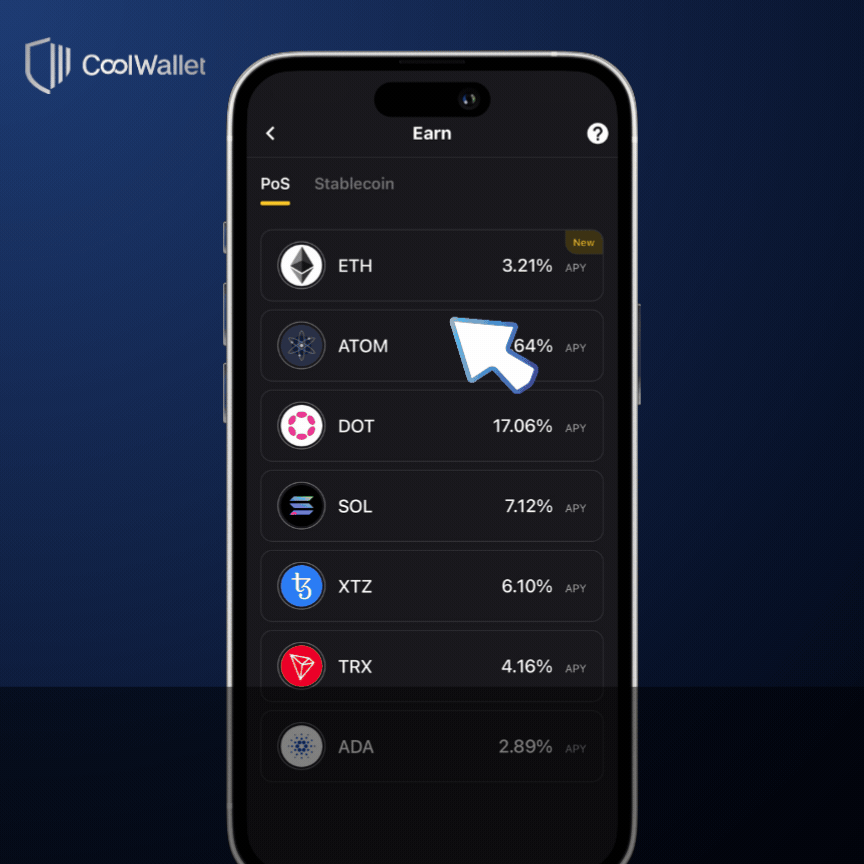 We support 7 types of PoS staking coins and 3 stablecoins across 3 blockchains, helping you diversify your staking portfolio. Additionally, CoolWallet provides self-custody, giving you full control over your private keys and assets.