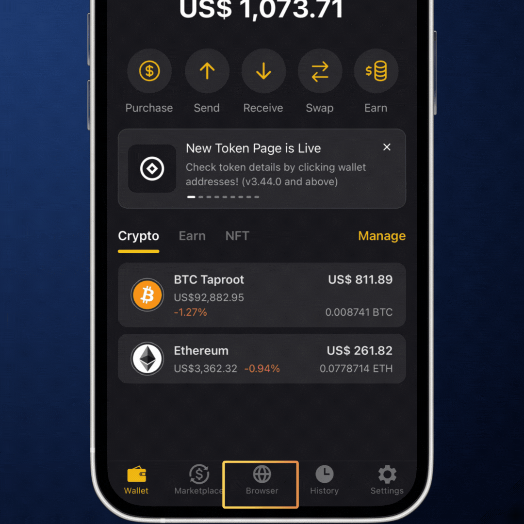 It supports multiple blockchains for broad ecosystem access. With intuitive navigation, it removes the need to switch between DApps and wallets, providing a seamless, mobile-friendly experience for interacting with various DApps.